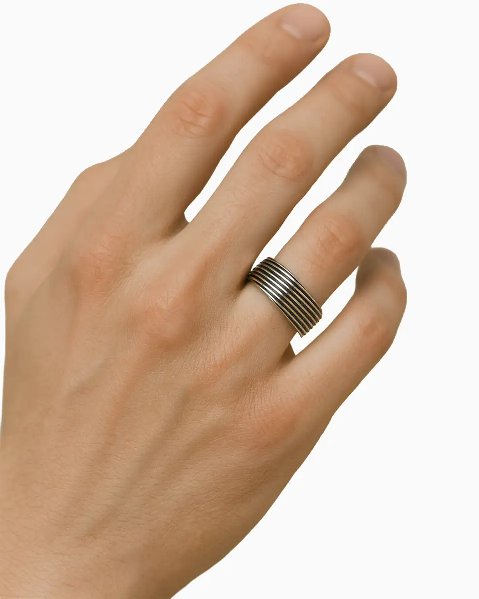Ideal para homens que apreciam design moderno e diferenciado, este anel é versátil e pode ser usado em visuais casuais ou formais, conferindo sempre um toque de elegância.