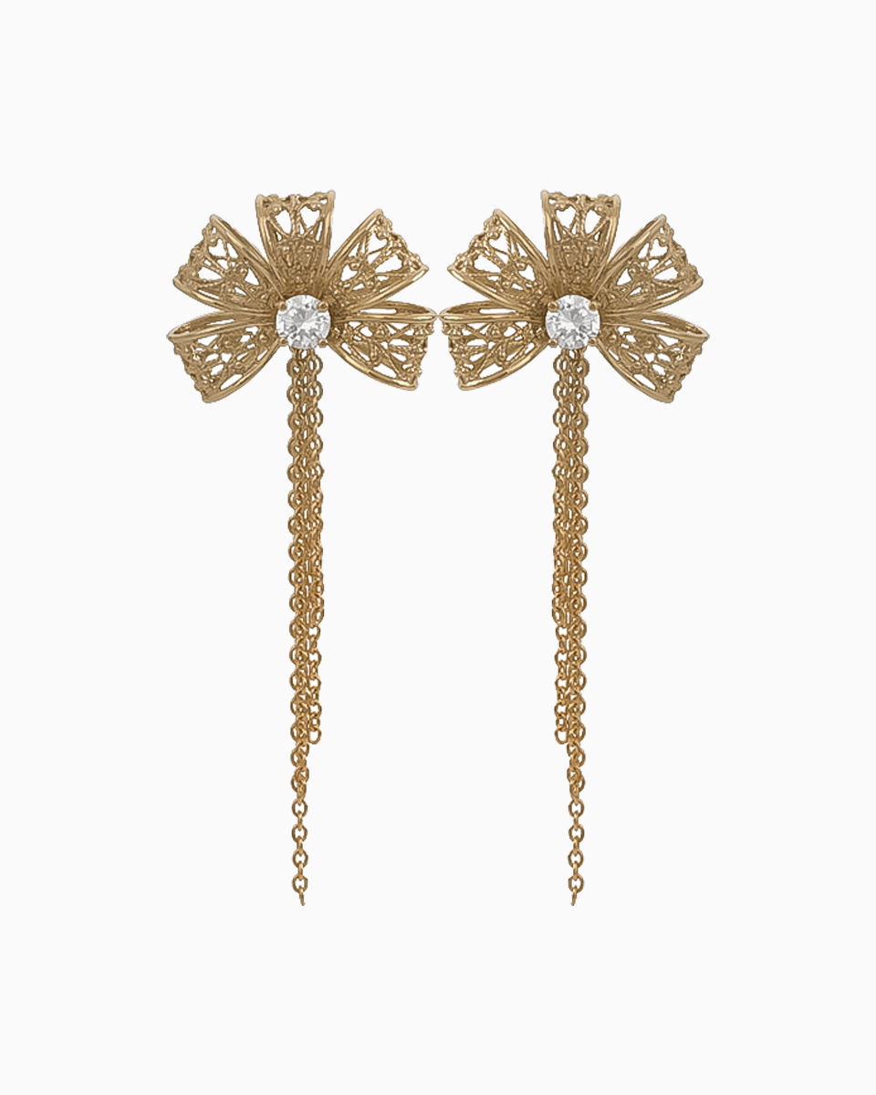 Design: Flor em filigrana com correntes suspensas