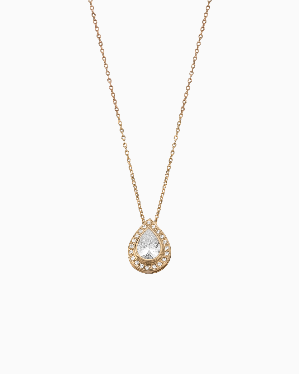 O design elegante e intemporal torna este colar ideal para complementar visuais do dia a dia com distinção ou para ocasiões especiais onde a elegância se destaca. A forma em gota, associada a harmonia e delicadeza, reforça o seu simbolismo como jóia marcante e feminina.