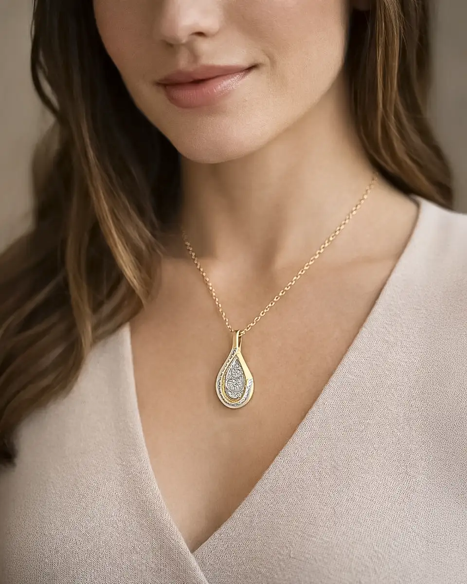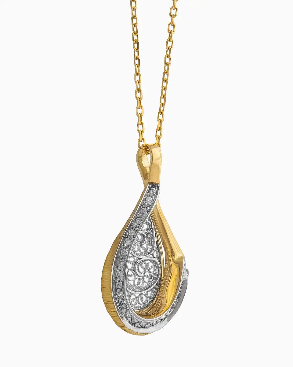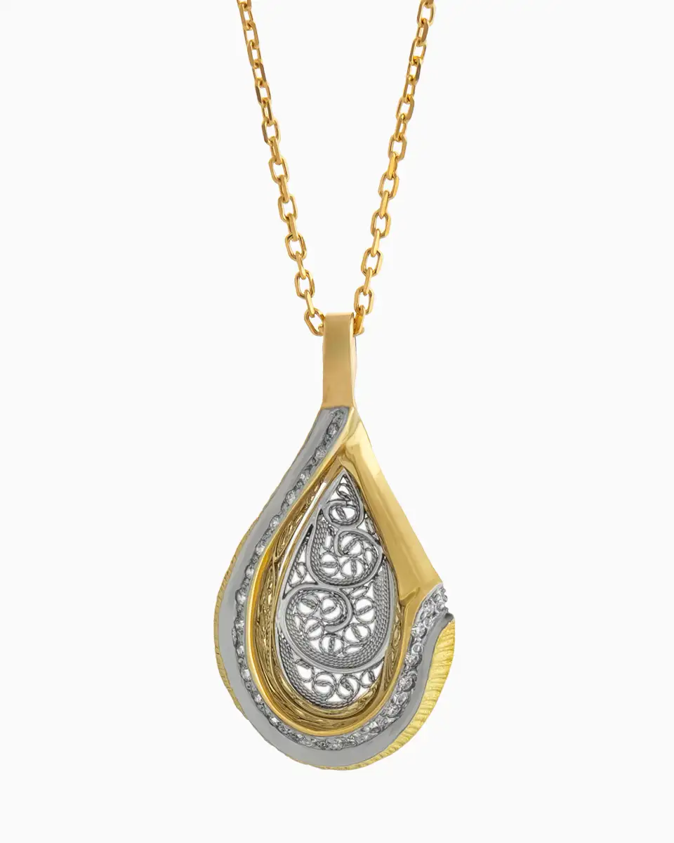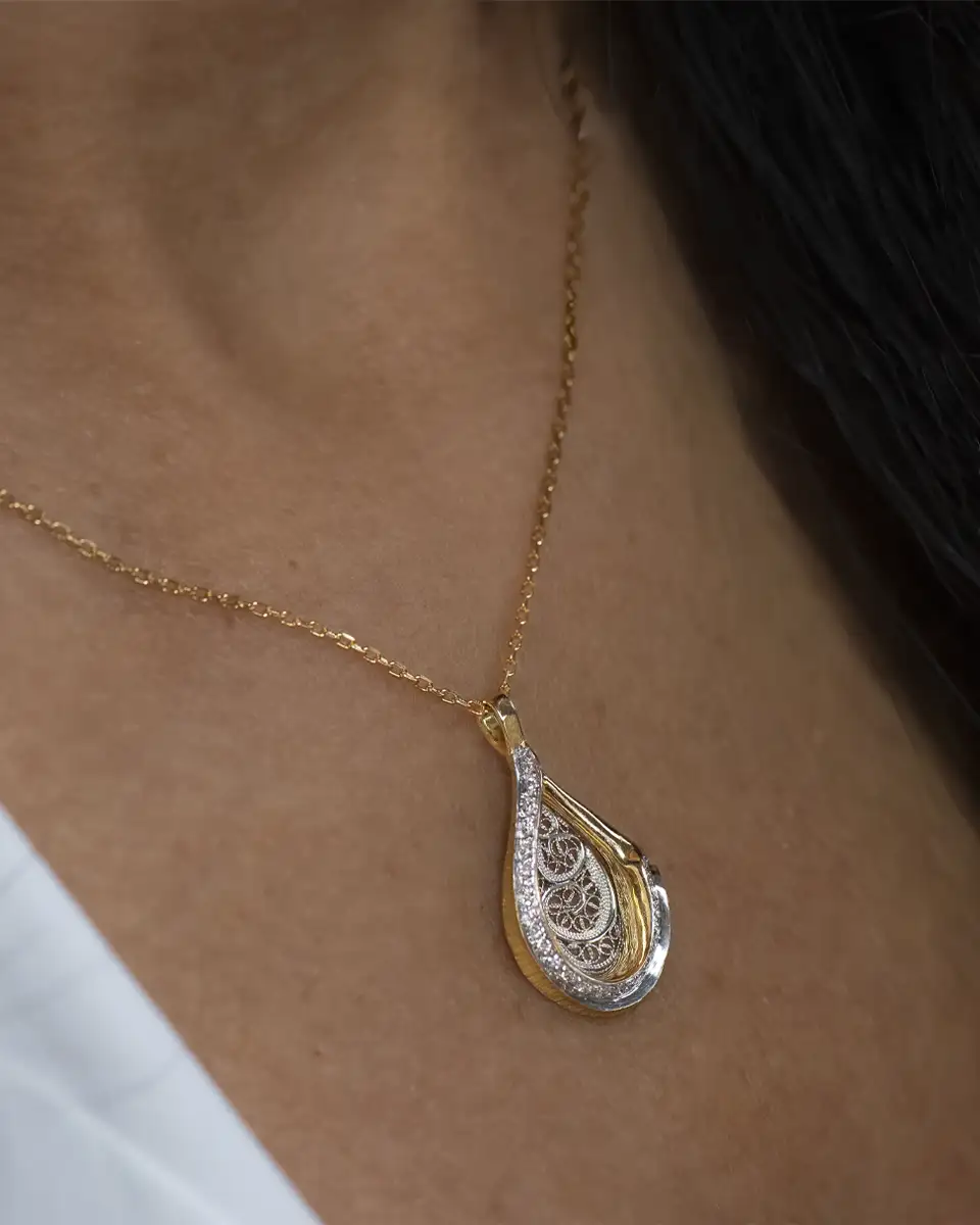 O Colar Gota do Mar Filigrana com Diamantes Ouro 19,2Kt | PEDRO ALVES, da coleção Tálassa, é uma joia profundamente inspirada no oceano e na sua simbologia.