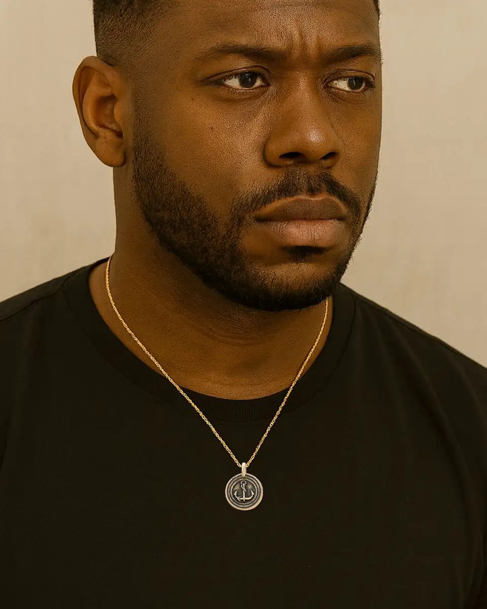 Medalha Âncora Prata 925 — jóia masculina artesanal com design náutico, símbolo de força, estabilidade e proteção.
